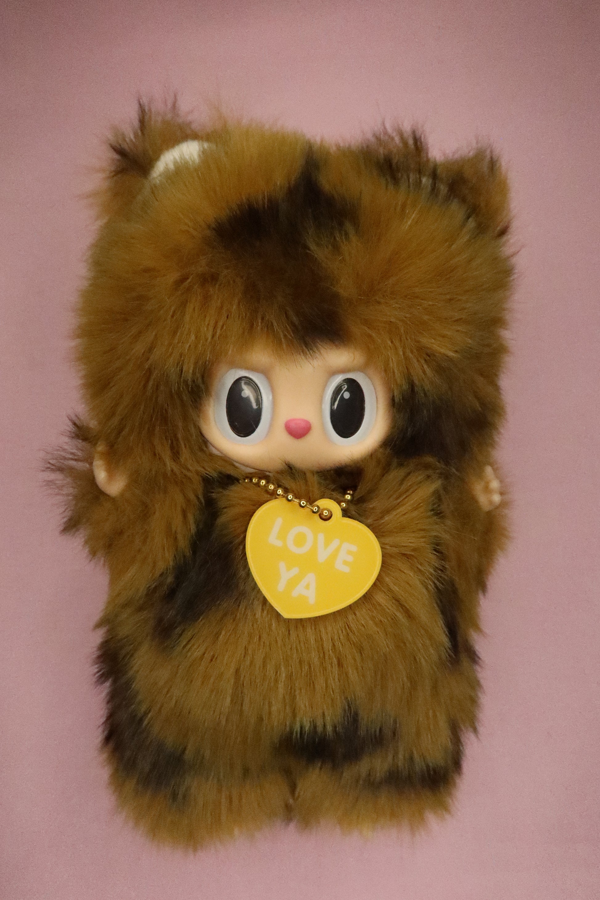 This fluff ball bubu is cozy and adorable with soft bronze fur and a pink nose!