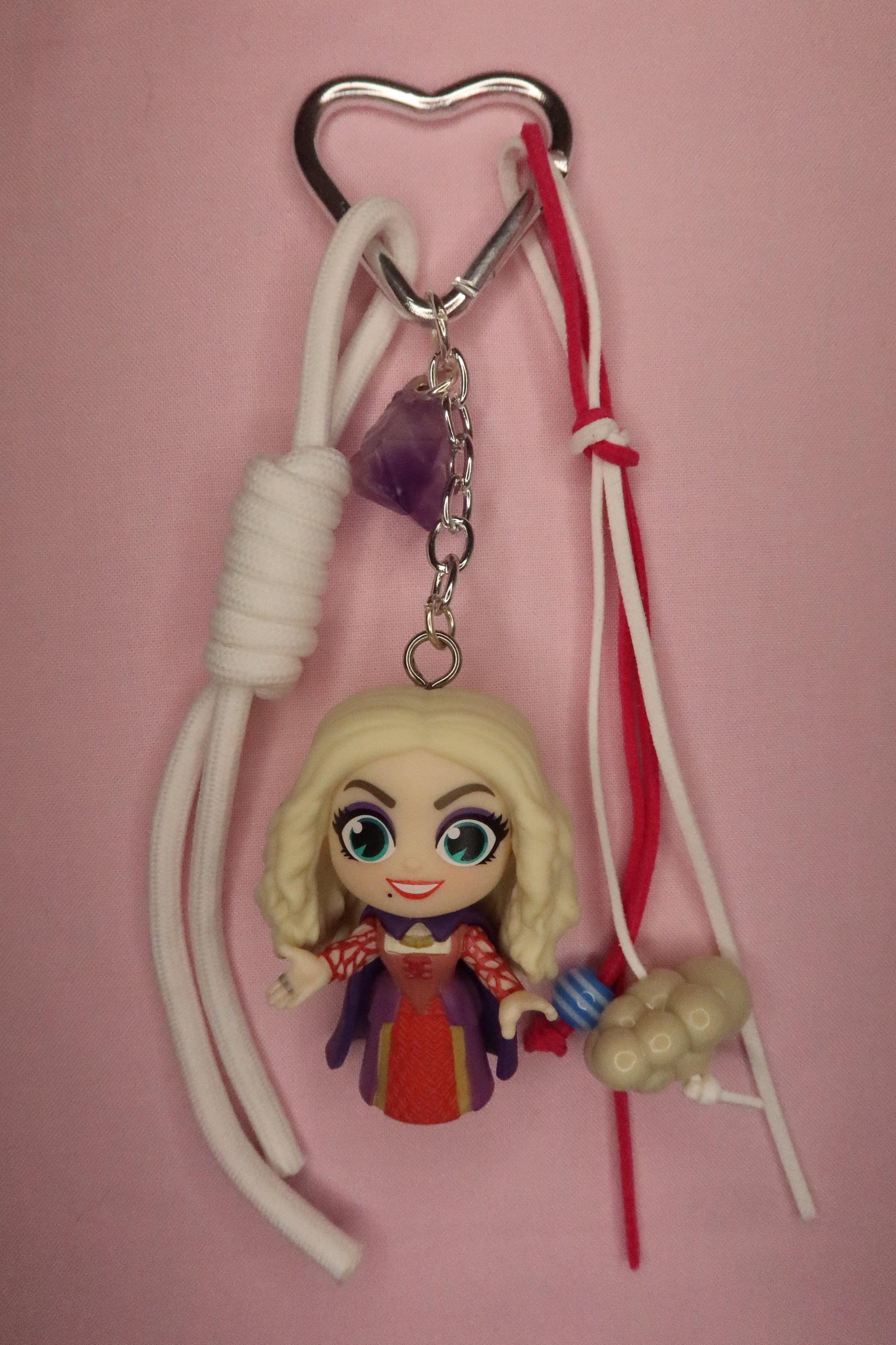 Sarah Sanderson from Hocus Pocus is officially keychained! Includes a purple quartz charm and two lanyard additions!