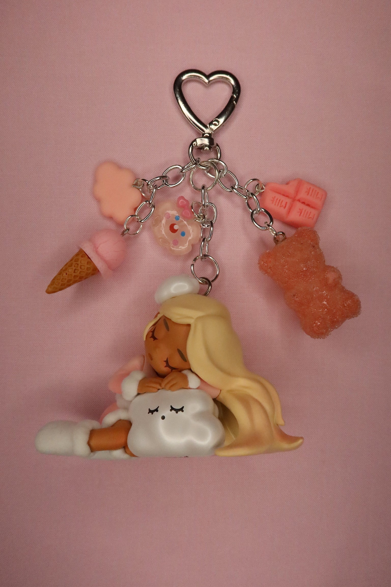 The Lil Peach Riot Sleepover Series ‘Poppy-Cloud’ figure has fuzzy white socks and a pretty pink robe, customized with fun pink charms!