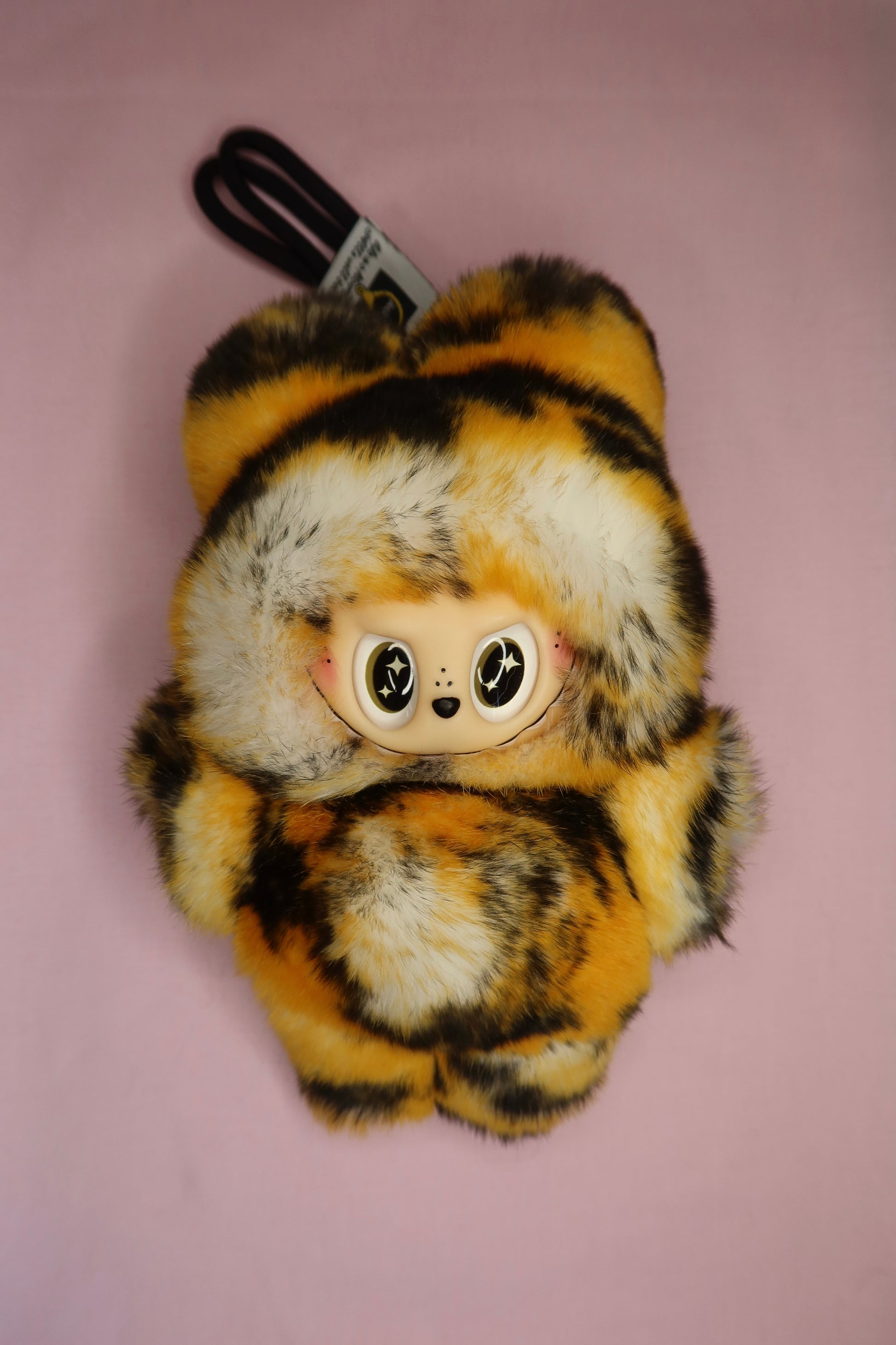 This floofy is Tiger print with black eyes (stars) and a black nose.